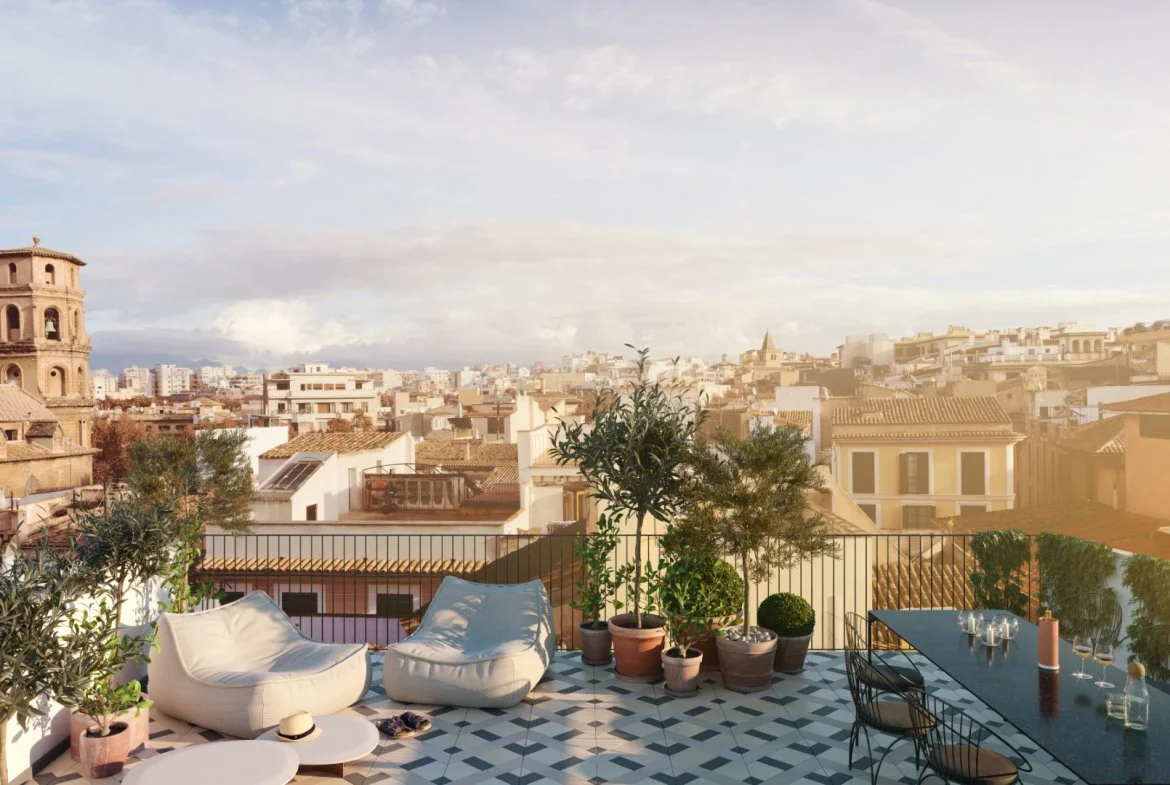 New luxury duplex penthouse apartment in a one of the oldest buildings of the island’s capital, Palma de Majorca. The building itself is set in the historic and most beautiful part of the city and is being converted to a beautifully renovated living complex of 10 highly personalised apartments and an amazing open patio with a pool and lounge area at the heart of it all.